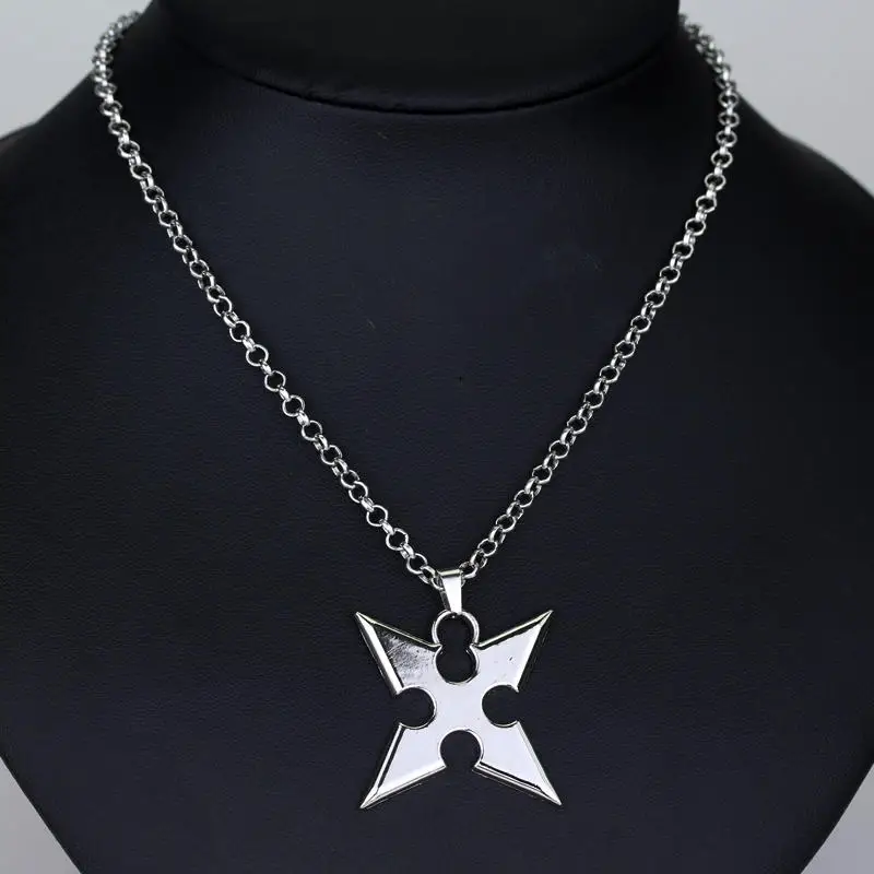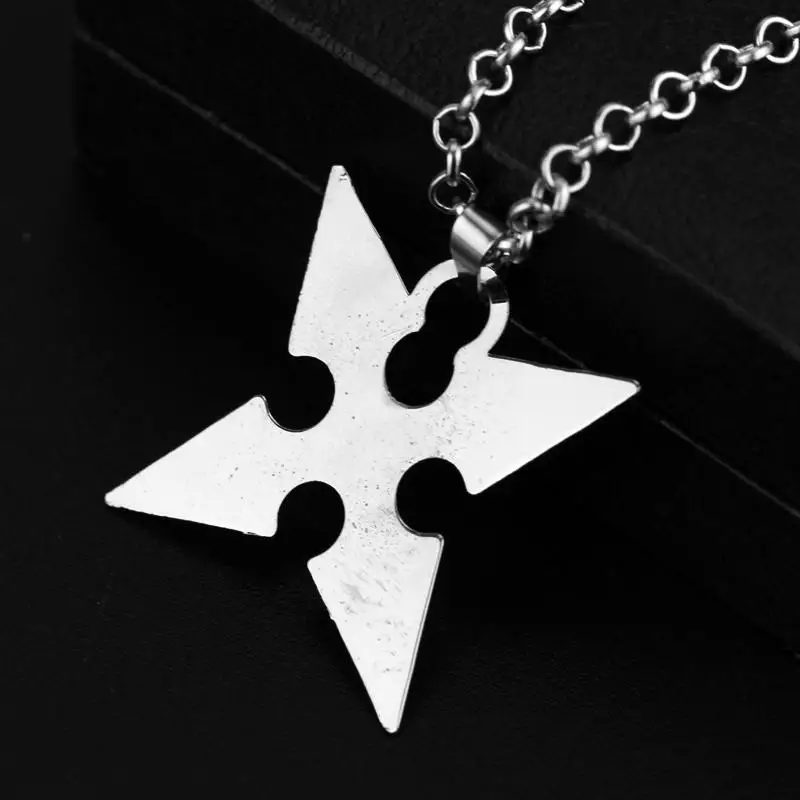 Kh themed metal shuriken necklace worn by riku.